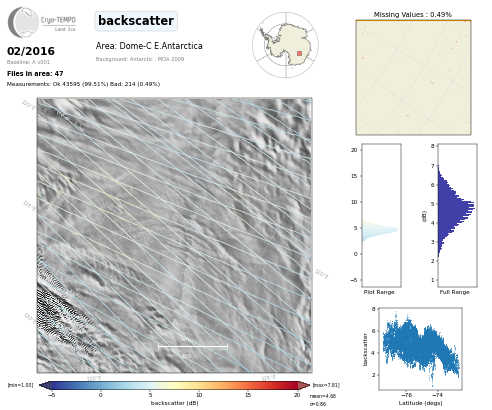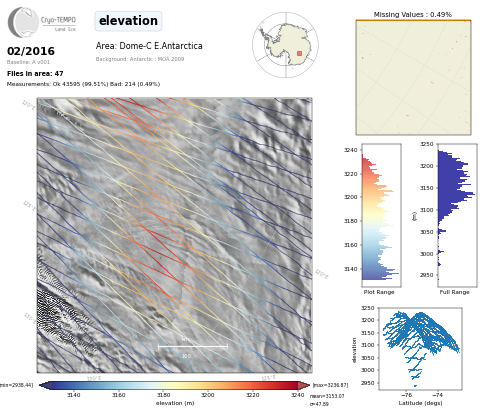 All Cryo-TEMPO Land Ice parameter maps for area : Dome-C (E.Ant). Click on map to view.