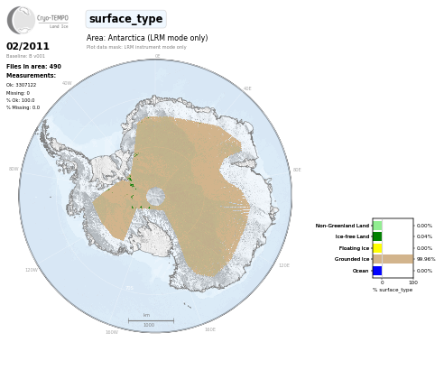 All Cryo-TEMPO Land Ice parameter maps for area : Antarctica (LRM mode mask). Click on map to view.