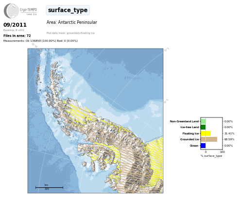 All Cryo-TEMPO Land Ice parameter maps for area : Antarctic Peninsular. Click on map to view.