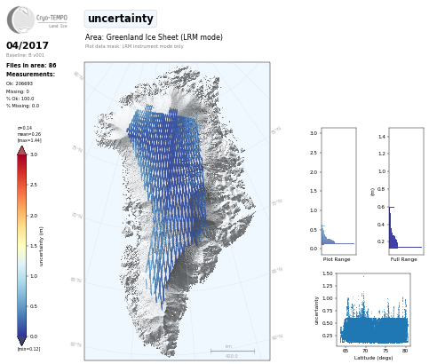 All Cryo-TEMPO Land Ice parameter maps for area : Greenland (LRM mode mask). Click on map to view.