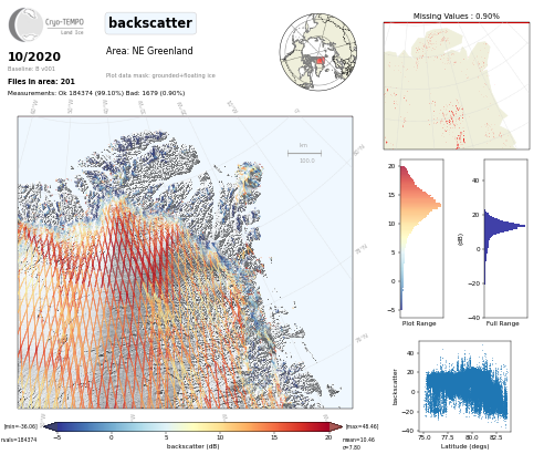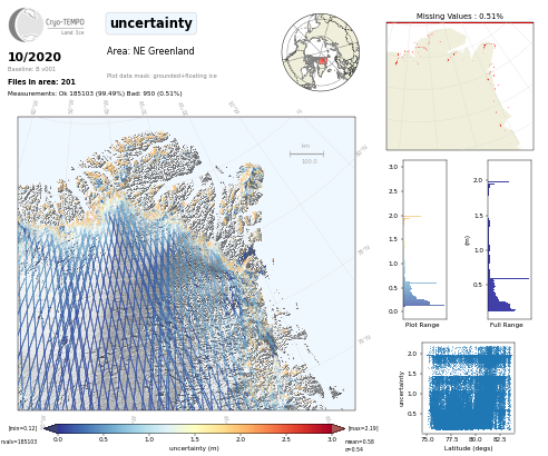 All Cryo-TEMPO Land Ice parameter maps for area : NE Greenland. Click on map to view.