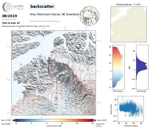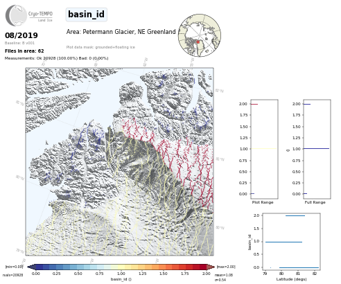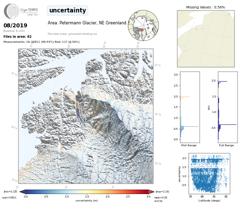 All Cryo-TEMPO Land Ice parameter maps for area : Petermann Glacier, Greenland. Click on map to view.