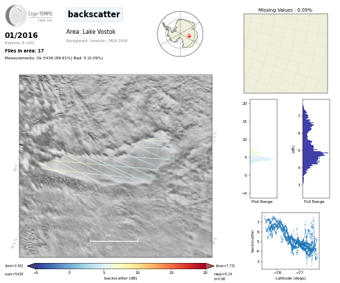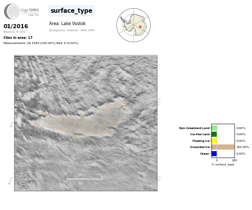 All Cryo-TEMPO Land Ice parameter maps for area : Lake Vostok (E.Ant). Click on map to view.