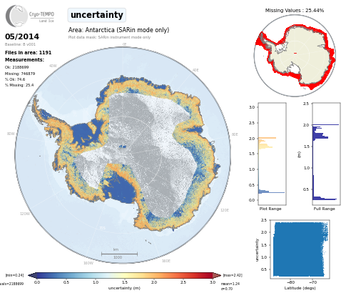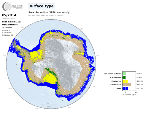 All Cryo-TEMPO Land Ice parameter maps for area : Antarctica (SARin mode mask). Click on map to view.