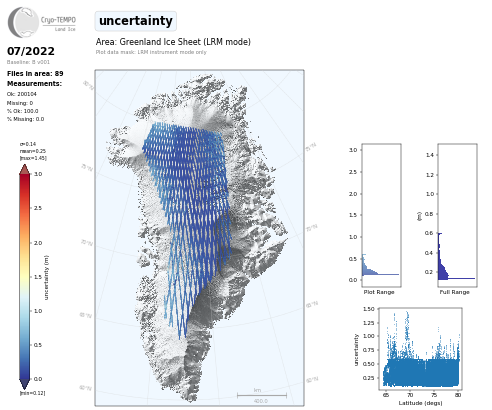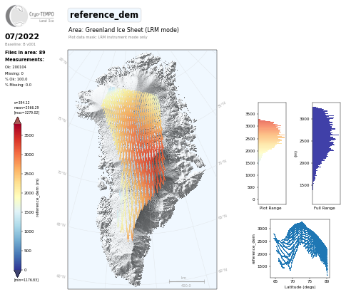 All Cryo-TEMPO Land Ice parameter maps for area : Greenland (LRM mode mask). Click on map to view.