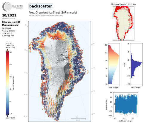 All Cryo-TEMPO Land Ice parameter maps for area : Greenland (SARin mode mask). Click on map to view.