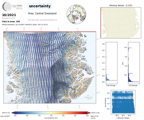 All Cryo-TEMPO Land Ice parameter maps for area : Central Greenland. Click on map to view.