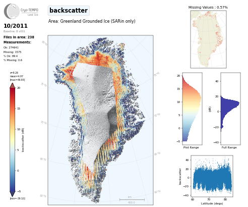 All Cryo-TEMPO Land Ice parameter maps for area : Greenland (SARin mode, Grounded Ice). Click on map to view.
