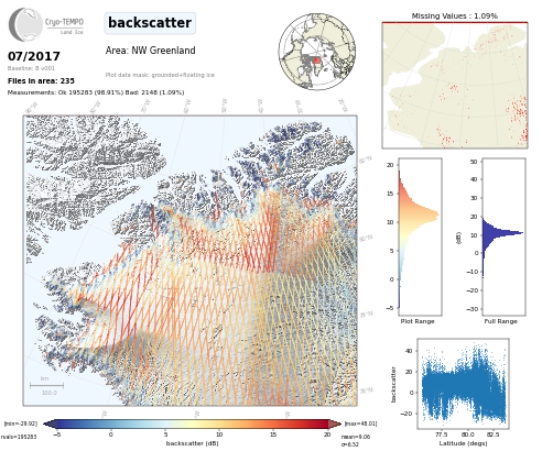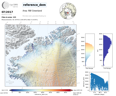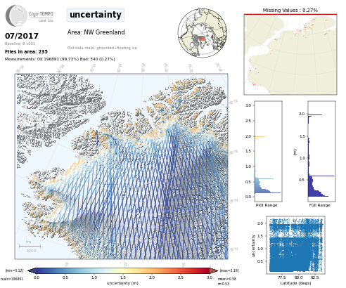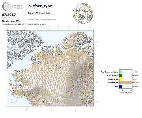 All Cryo-TEMPO Land Ice parameter maps for area : NW Greenland. Click on map to view.