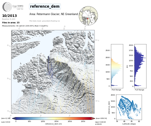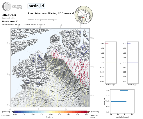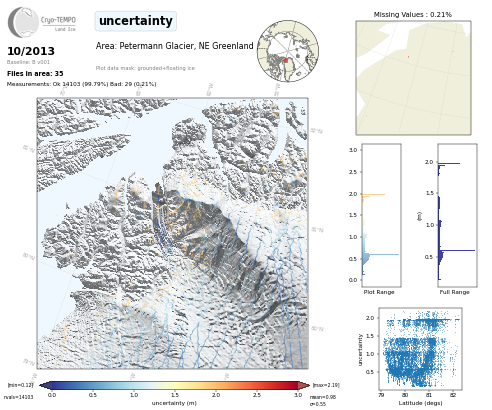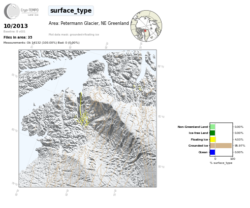 All Cryo-TEMPO Land Ice parameter maps for area : Petermann Glacier, Greenland. Click on map to view.