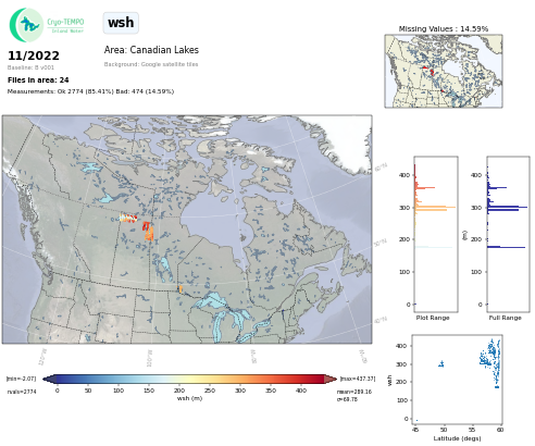 All Cryo-TEMPO Inland Waters parameter maps for area : All Canadian Lakes. Click on map to view.