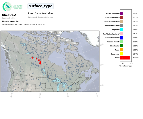All Cryo-TEMPO Inland Waters parameter maps for area : All Canadian Lakes. Click on map to view.