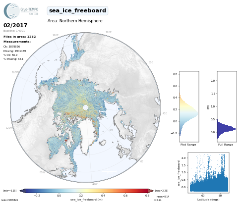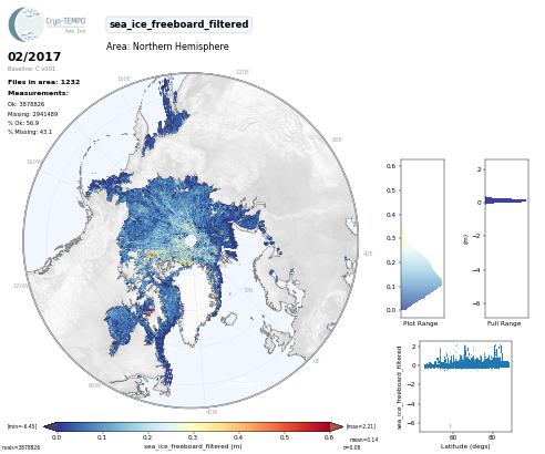 All Cryo-TEMPO Sea Ice parameter maps for area : Northern Hemisphere. Click on map to view.