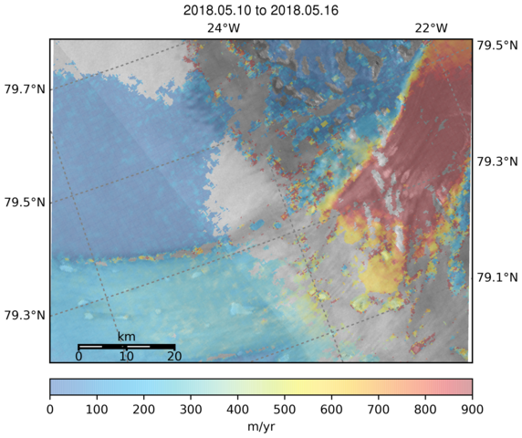Ice Velocity from Images Pairs: 10.05.2018 to 16.05.2018 :