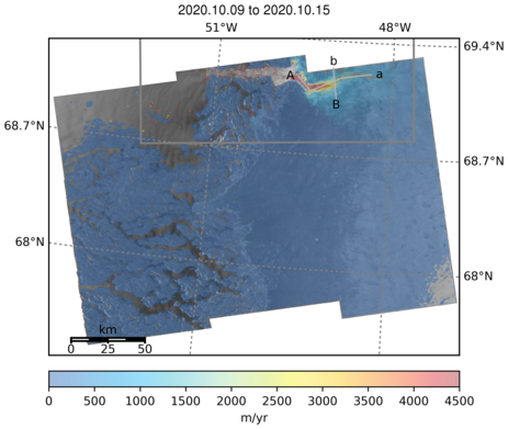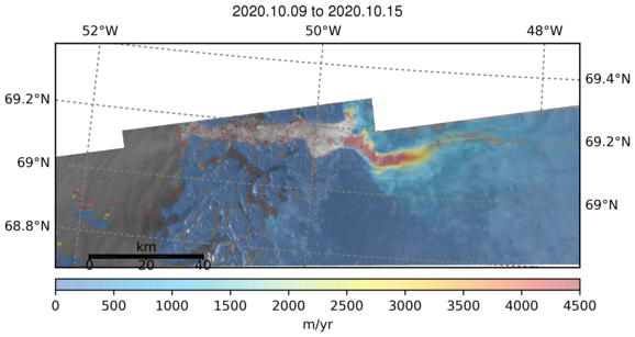 Ice Velocity from Images Pairs: 09.10.2020 to 15.10.2020 :