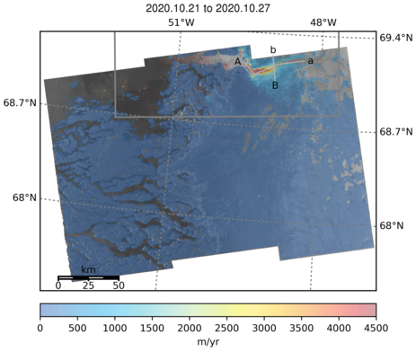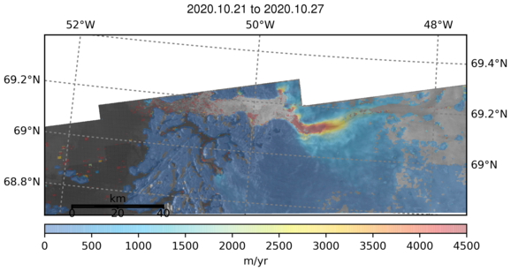 Ice Velocity from Images Pairs: 21.10.2020 to 27.10.2020 :