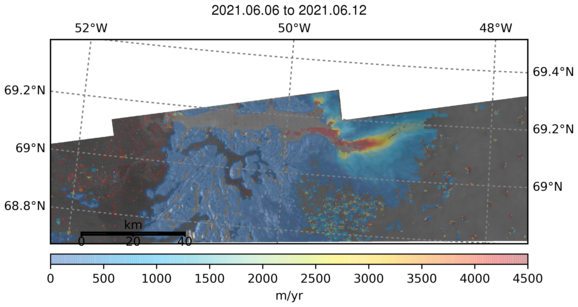 Ice Velocity from Images Pairs: 06.06.2021 to 12.06.2021 :