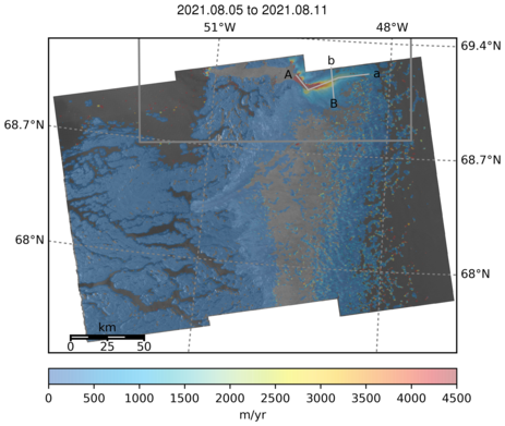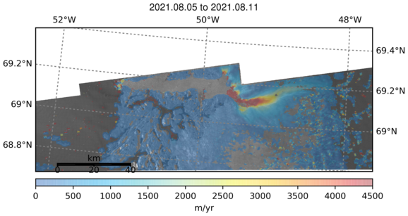 Ice Velocity from Images Pairs: 05.08.2021 to 11.08.2021 :