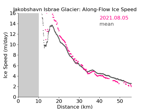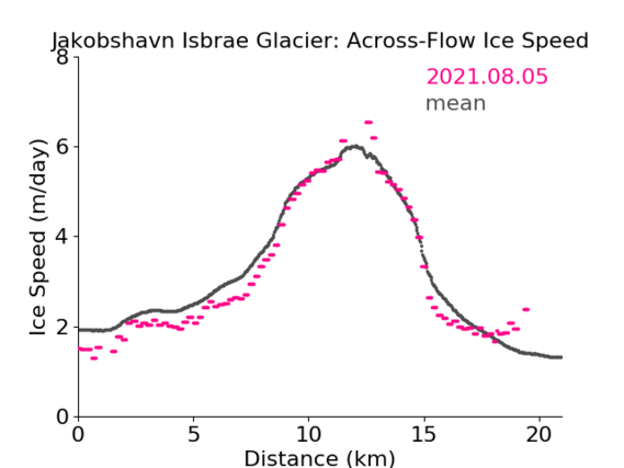 All data files from Jakobshavn Isbrae Glacier, from Sentinel-1 data acquired between 05.08.2021 - 11.08.2021 Geotiff and ASCII text 1.61 MB JAK_210805_210811.zip