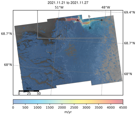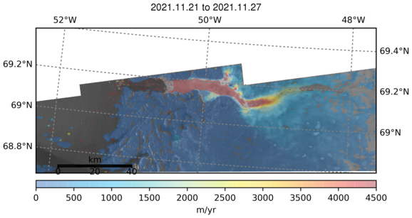 Ice Velocity from Images Pairs: 21.11.2021 to 27.11.2021 :