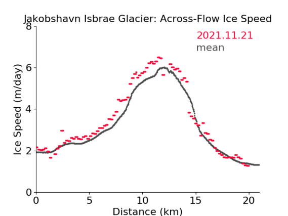 All data files from Jakobshavn Isbrae Glacier, from Sentinel-1 data acquired between 21.11.2021 - 27.11.2021 Geotiff and ASCII text 1.70 MB JAK_211121_211127.zip