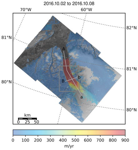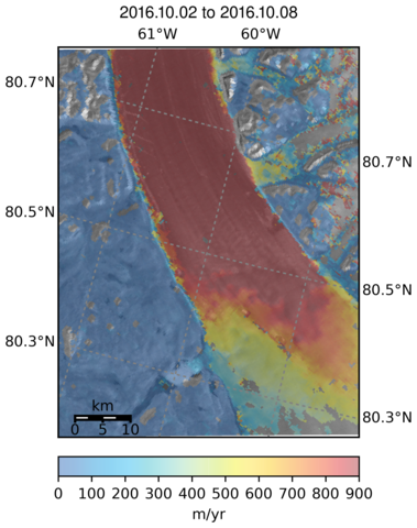 Ice Velocity from Images Pairs: 02.10.2016 to 08.10.2016 :