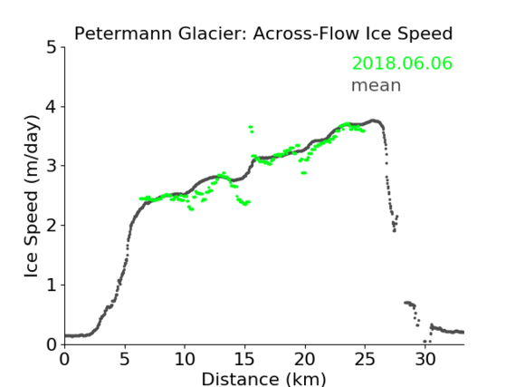 All data files from Petermann Glacier, from Sentinel-1 data acquired between 06.06.2018 - 12.06.2018 Geotiff and ASCII text 2.45 MB PG_180606_180612.zip