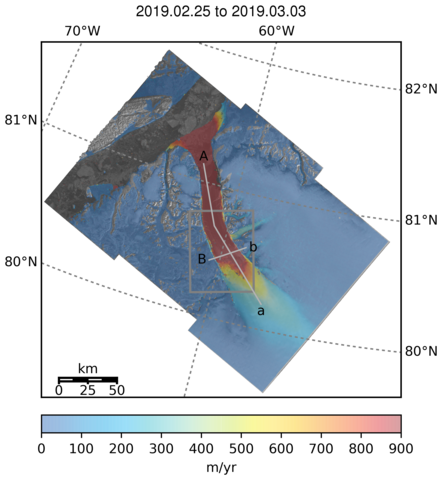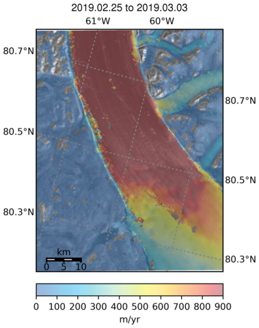 Ice Velocity from Images Pairs: 25.02.2019 to 03.03.2019 :