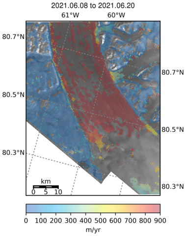 Ice Velocity from Images Pairs: 08.06.2021 to 20.06.2021 :