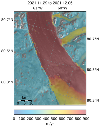 Ice Velocity from Images Pairs: 29.11.2021 to 05.12.2021 :
