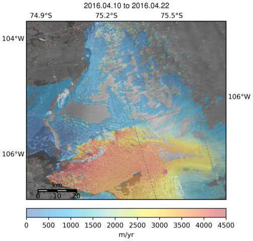 Ice Velocity from Images Pairs: 10.04.2016 to 22.04.2016 :