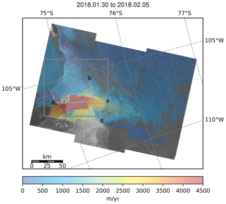 Ice Velocity from Images Pairs: 30.01.2018 to 05.02.2018 :