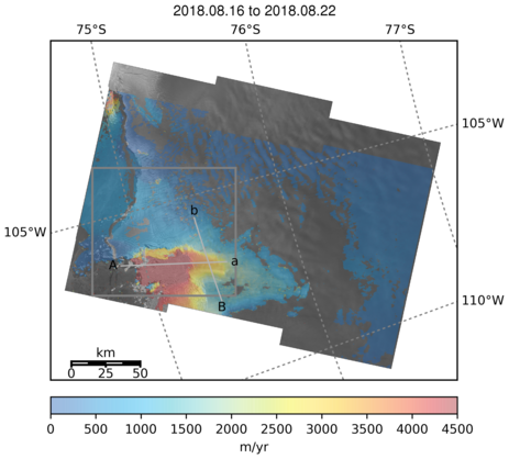 Ice Velocity from Images Pairs: 16.08.2018 to 22.08.2018 :