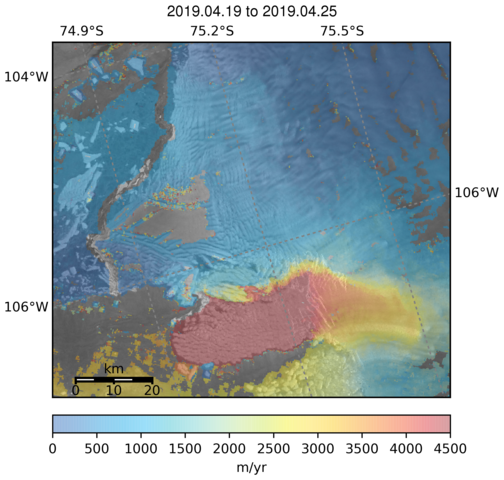 Ice Velocity from Images Pairs: 19.04.2019 to 25.04.2019 :