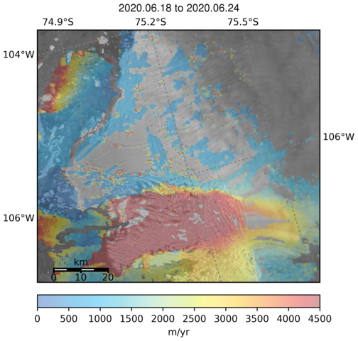 Ice Velocity from Images Pairs: 18.06.2020 to 24.06.2020 :