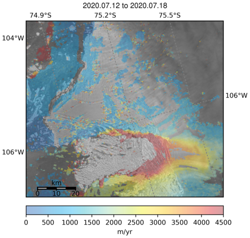 Ice Velocity from Images Pairs: 12.07.2020 to 18.07.2020 :