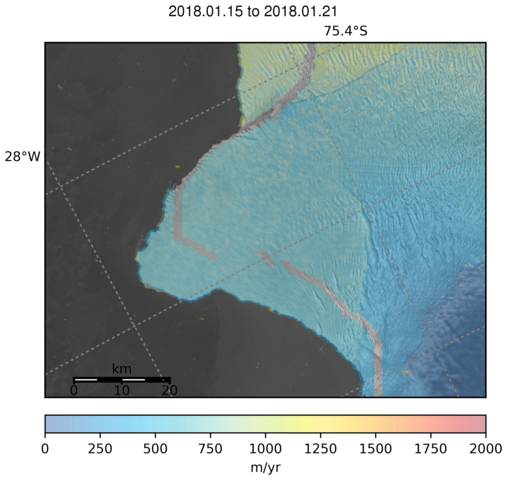 Ice Velocity from Images Pairs: 15.01.2018 to 21.01.2018 :