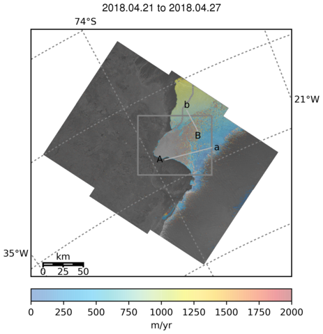 Ice Velocity from Images Pairs: 21.04.2018 to 27.04.2018 :