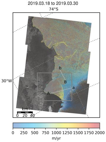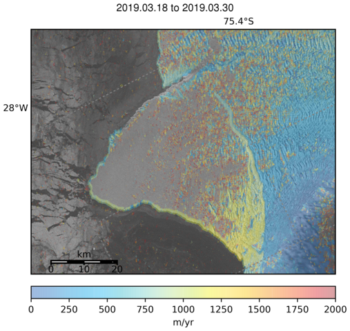 Ice Velocity from Images Pairs: 18.03.2019 to 30.03.2019 :