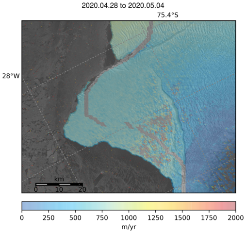 Ice Velocity from Images Pairs: 28.04.2020 to 04.05.2020 :