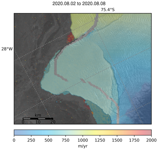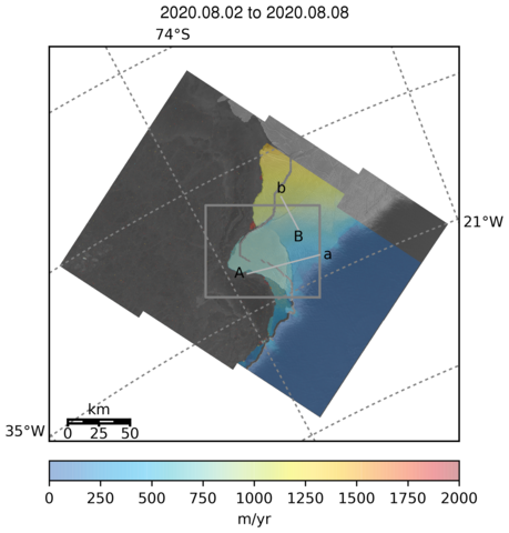 Ice Velocity from Images Pairs: 02.08.2020 to 08.08.2020 :