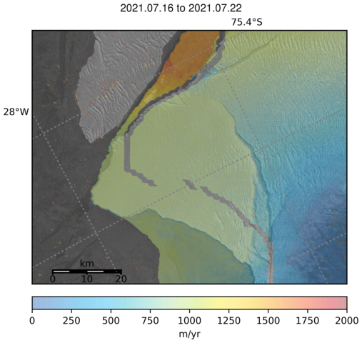 Ice Velocity from Images Pairs: 16.07.2021 to 22.07.2021 :